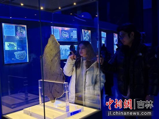 12月19日,參加由吉林省文化和旅游廳主辦的“Hello冰雪Go吉林”國(guó)際媒體采風(fēng)活動(dòng)的媒體記者、網(wǎng)絡(luò)博主走進(jìn)吉林市,在吉林市博物館(吉林市隕石博物館)近距離領(lǐng)略“天外來客”隕石的魅力,感受中國(guó)歷史文化名城的新活力。