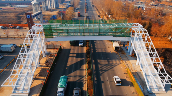 中新網(wǎng)吉林新聞11月17日電(記者 石洪宇)近日,記者從吉林省永吉縣獲悉,吉林鐵道職業(yè)技術(shù)大學(xué)過街天橋工程項目主體鋼結(jié)構(gòu)工程已施工完成,正在進行天橋頂棚的骨架安裝工作,預(yù)計在12月末全部完成施工。