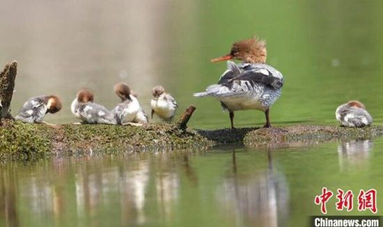 在吉林園池濕地國家級自然保護(hù)區(qū)頭道白河支流,工作人員監(jiān)測到40多只中華秋沙鴨,4個(gè)天然巢、14個(gè)仿生巢都有中華秋沙鴨入住。該保護(hù)區(qū)管理局資源科科長韓銘介紹,已有5個(gè)巢成功完成孵化,新跳巢雛鳥數(shù)量有51只,其他巢的中華秋沙鴨也在孵化中。