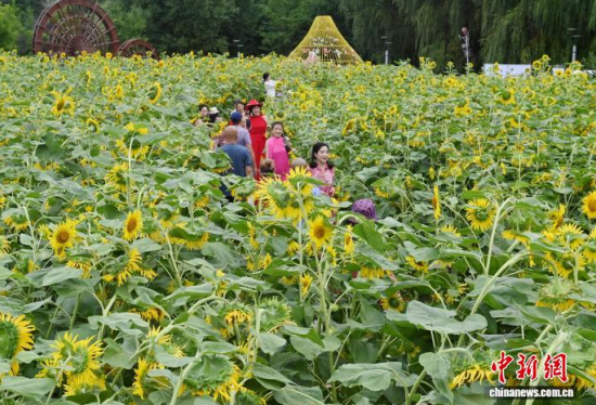 吉林長(zhǎng)春:向日葵盛開(kāi)吸引游客