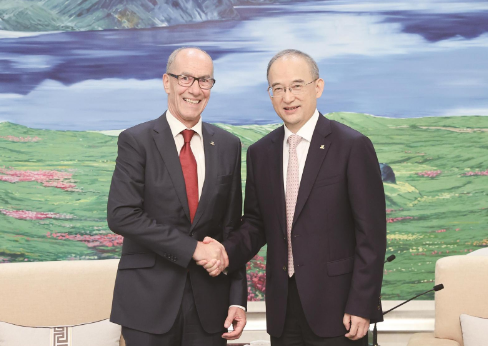 6月18日,省委書記黃強在長春會見國際大學生體育聯(lián)合會主席雷諾·艾德一行。 本報記者 丁研 攝
