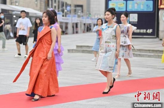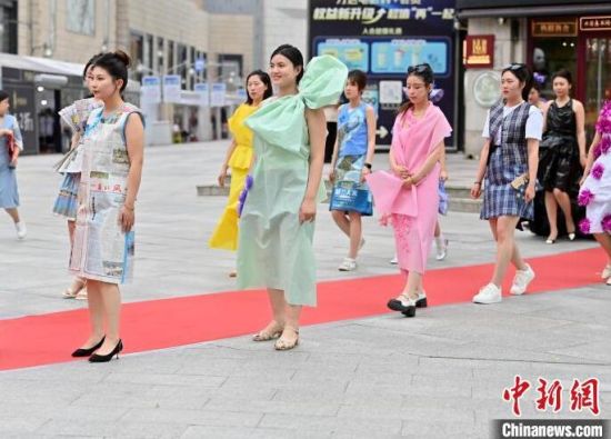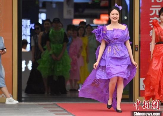 6月5日,吉林長春,模特身穿綠色環(huán)保時(shí)裝走秀。值此世界環(huán)境日來臨之際,長春開展“塑制霓裳·環(huán)保領(lǐng)航”綠色環(huán)保時(shí)裝秀表演活動(dòng)。民眾將廢舊的報(bào)紙、塑料袋等廢舊物品變成了美麗的衣裳,宣傳環(huán)保意識(shí)。張瑤 攝