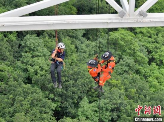 7月2日,吉林長(zhǎng)春,消防救援人員正在進(jìn)行繩索救援比拼。當(dāng)天,在吉林省森林消防總隊(duì)第六屆“火焰藍(lán)”大練兵比武中,7支隊(duì)伍模擬高空救援,圍繞不同氣溫、不同場(chǎng)地,模擬人員摔傷、墜崖等被困實(shí)戰(zhàn)情景,利用繩索救援技術(shù)開展比拼。(完)