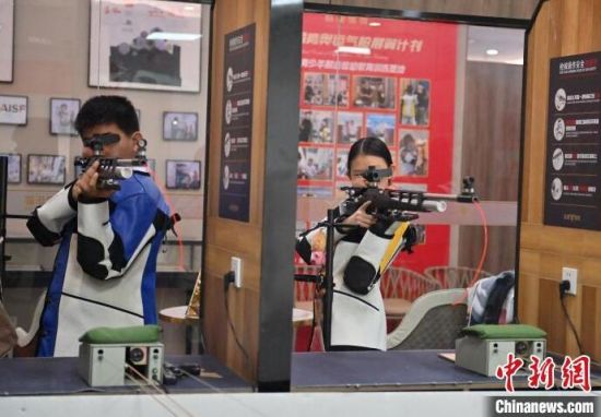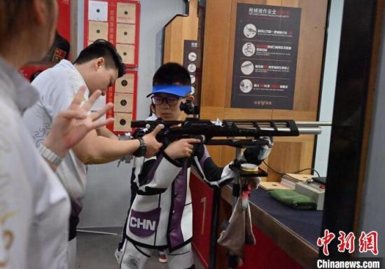 7月19日,在吉林省長春市一家氣槍訓(xùn)練基地,學(xué)生們在進行據(jù)槍訓(xùn)練。正值暑期,該氣槍訓(xùn)練基地吸引不少青少年體驗射擊運動。(中新社記者 張瑤/攝)