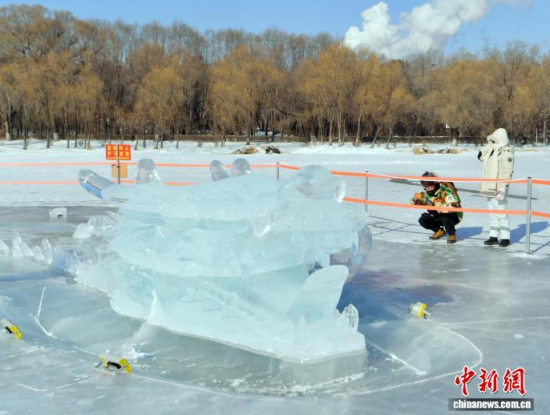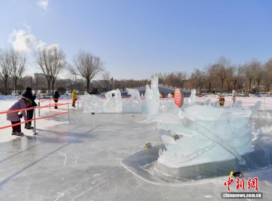 吉林長(zhǎng)春:“龍鳳呈祥”巨型冰雕吸引市民
