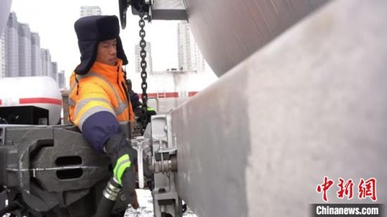 中新網(wǎng)吉林2月1日電 (記者 石洪宇)凌晨三點的貨運調(diào)車場,車輪和鐵軌撞擊發(fā)出的聲響傳出很遠!00后”連結(jié)員徐瑞峰抓穩(wěn)把手,身體懸于車廂外,睫毛、帽檐都掛上了白霜。