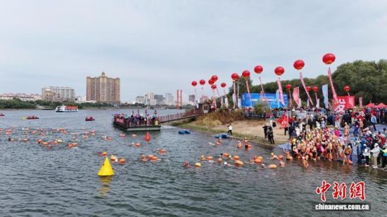 200名“泳士”橫渡吉林松花江 感受“金秋寒江”魅力